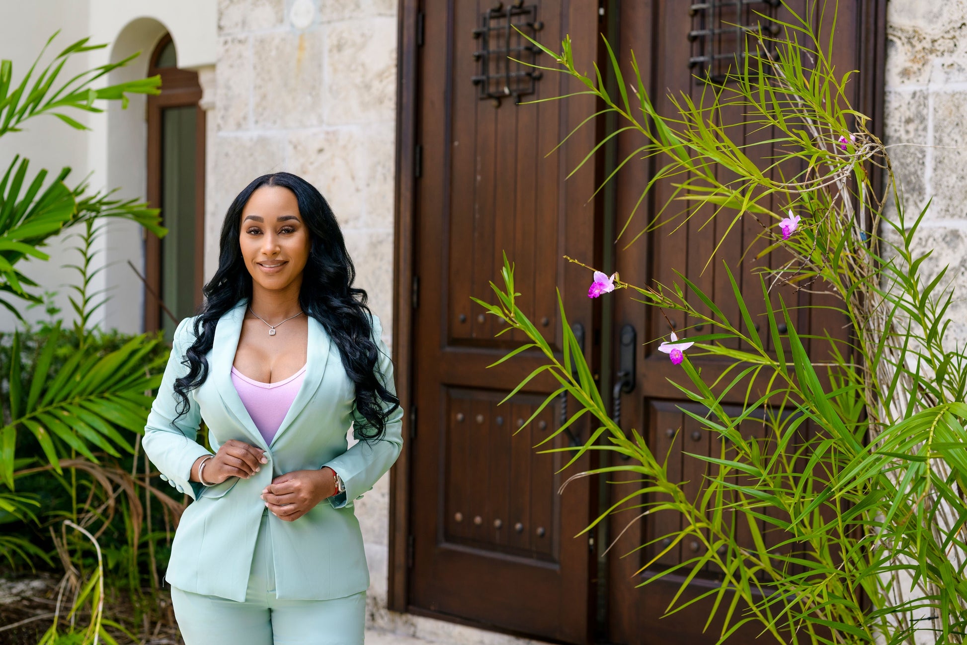Two-piece sage blazer set